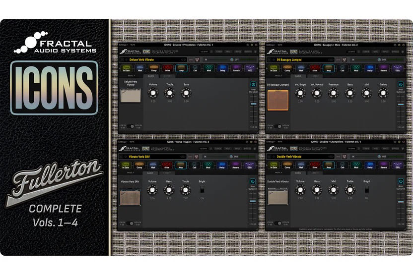 Первый релиз в серии получил название ICONS: Fullerton. Он посвящён классическим американским усилителям и включает 36 моделей, вдохновлённых схемами 50-х, 60-х и 70-х годов. В списке есть Deluxes, Bassguys, Double-Verbs, Vibrato Verbs, Supers, Princetones, Champlifiers и другие вариации, явно отсылающие к культовым Fender-дизайнам.